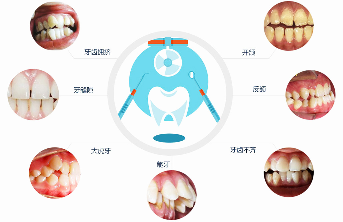 牙齿拥挤或突出,面部外观不协调、领骨及软组织的生长异常,严重影响脸形。